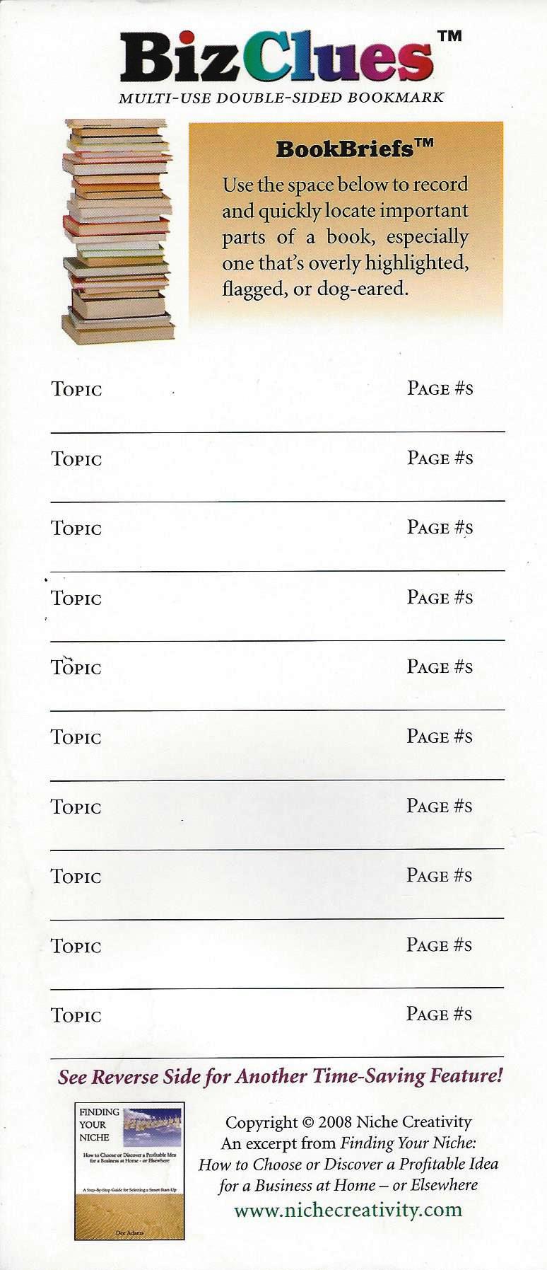 Finding Your Niche Bookmark: Front, Back, Multi-Use Notepad